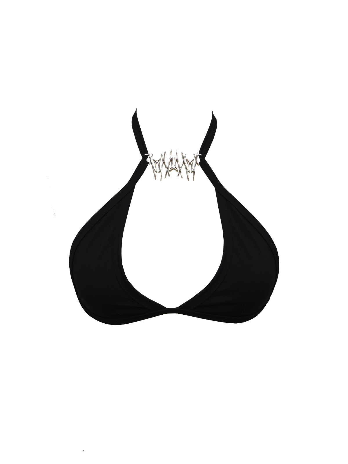 This crescent triangle shaped Bikini Top is made from Recycled Nylon/Lycra material, with Zinc Alloy 'WWW' pendant.